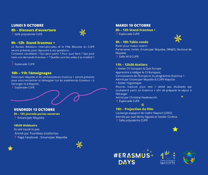 Le CUFR en partenariat avec Émanciper Mayotte organise sa première édition des ERASMUS DAYS.
